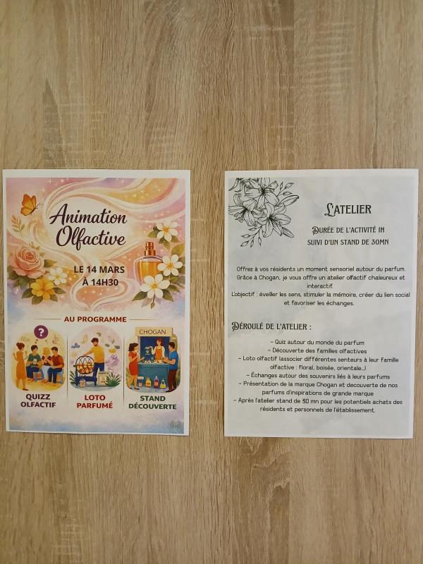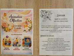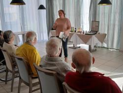 À l’occasion d’une activité olfactive, Camille est venue nous faire découvrir sa gamme de produits. La présentation s’est déroulée dans une ambiance conviviale, accompagnée d’un quiz et d’un jeu des odeurs qui ont beaucoup amusé les résidents.