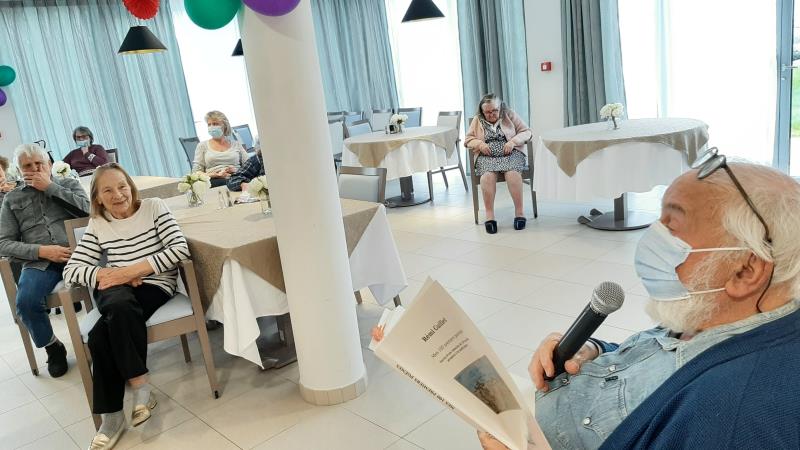 Aujourd'hui, nous avons eu la surprise de recevoir un poète Mr Guillet, de passage, nous avons osé lui demander de nous lire quelques uns de ses poèmes. Du coup , vous comprendrez que nous avons vite oublié notre programme initial. Les résidents attentifs et silencieux ont bien appréciés la lecture.